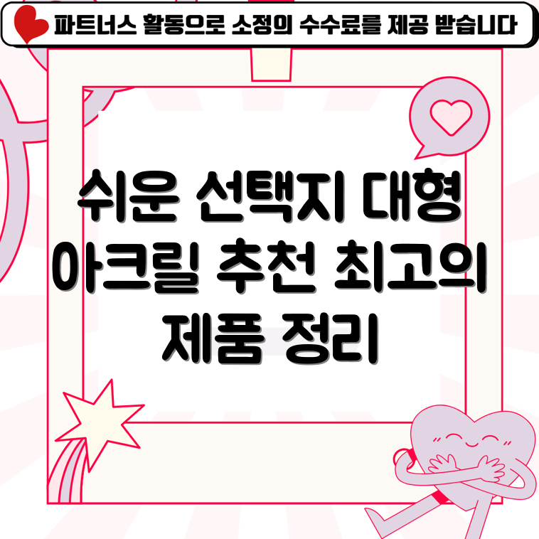 ⚠️ 이 포스팅은 쿠팡 파트너스 활동의 일환으로 수수료를 지급받습니다 🔥 구매정보 보러가기 🔥대형아크릴판의 장점은?최저가 확인하기대형 아크릴 투명 아크릴판의 주요 특징과 상세 스펙을 확인하세요.대형아크릴판은 뛰어난 투명성과 내구성을 자랑합니다. 이러한 제품은 DIY 프로젝트, 전시회, 가드닝, 보호 대책 등 다양한 용도로 활용할 수 있습니다. 특히, 이 대형 아크릴판은 900 X 1800mm 크기와 두께 5T로 제공되어 넉넉한 공간을 제공합니다. 전문가부터 초보자까지 누구나 손쉽게 사용할 수 있는 아이템입니다.주요 특징대형 아크릴판은 고품질 소재로 제작되어 스크래치에 강하며, 일반 유리보다 가벼운 무게를 자랑합니다. 또한 UV 차단 기능이 있어 햇빛에 노출되어도 변색이 적고, 긴 시간 동안 새로운 상..
