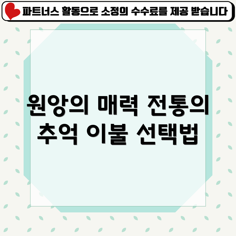 ⚠️ 이 포스팅은 쿠팡 파트너스 활동의 일환으로 수수료를 지급받습니다 🔥 구매정보 보러가기 🔥원앙금침의 역사적 의미최저가 확인하기원앙금침전통이불의 주요 특징과 상세 스펙을 확인하세요.원앙금침은 전통 한옥의 아름다움을 담고 있는 한국 문화유산으로, 주로 혼수용으로 사용되어 세대를 아우르는 상징적 의미를 지닙니다. 이불에 수놓인 원앙은 부부의 행복과 평화를 기원하며, 정교한 비단 실크와 색동 패턴으로 artisan의 손길이 느껴집니다. 원앙금침전통이불은 이러한 역사적 맥락 속에 더욱 특별한 가치를 부여합니다.주요 특징원앙금침전통이불은 전통의 우아함을 현대에서 재현하며, 세탁이 용이하고 내구성이 뛰어난 소재로 제작되어 일상생활에서도 활용이 가능합니다. 또한, 비단 실크 소재는 피부에 부드러운 감촉을 제공하..